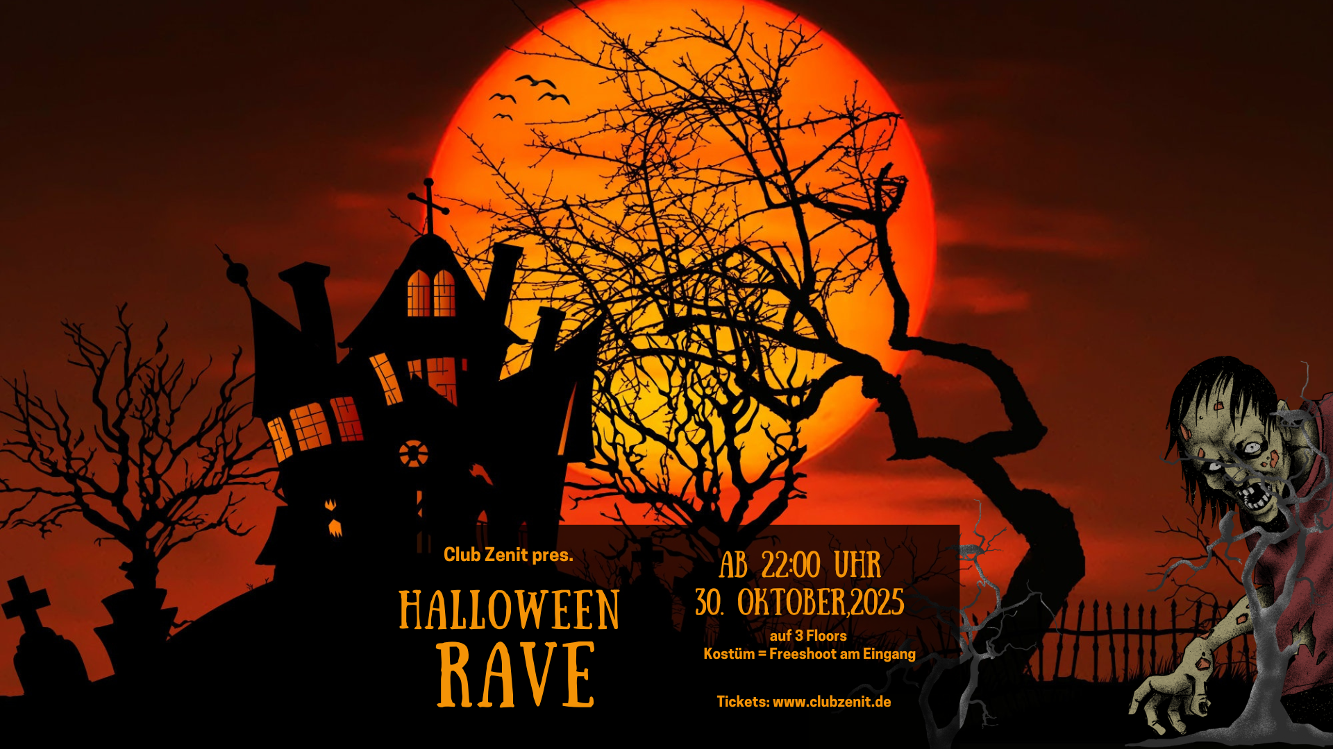 Bist du bereit für eine Halloween-Party, die du so noch nie erlebt hast? Dann bist du am 30.10.2025 ab 22:00 Uhr genau richtig! Das Zenit verwandelt sich in ein Gruselkabinett auf 3 Floors. Sichere dir jetzt dein Ticket und sei dabei.