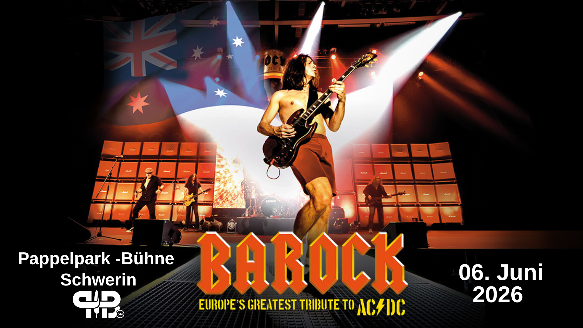 Die in einer eigenen Spitzenklasse spielende Tribute-Band ist weitaus mehr als nur ein „AC/DC-Ersatz“. Verdammt nahe am Original sorgen die fünf Herren von BAROCK für gnadenlos geniale Shows! Im Gepäck eine Mega-Produktion samt Glocke, Kanonen, Pyro-Show und über 60 Marshall-Boxen.